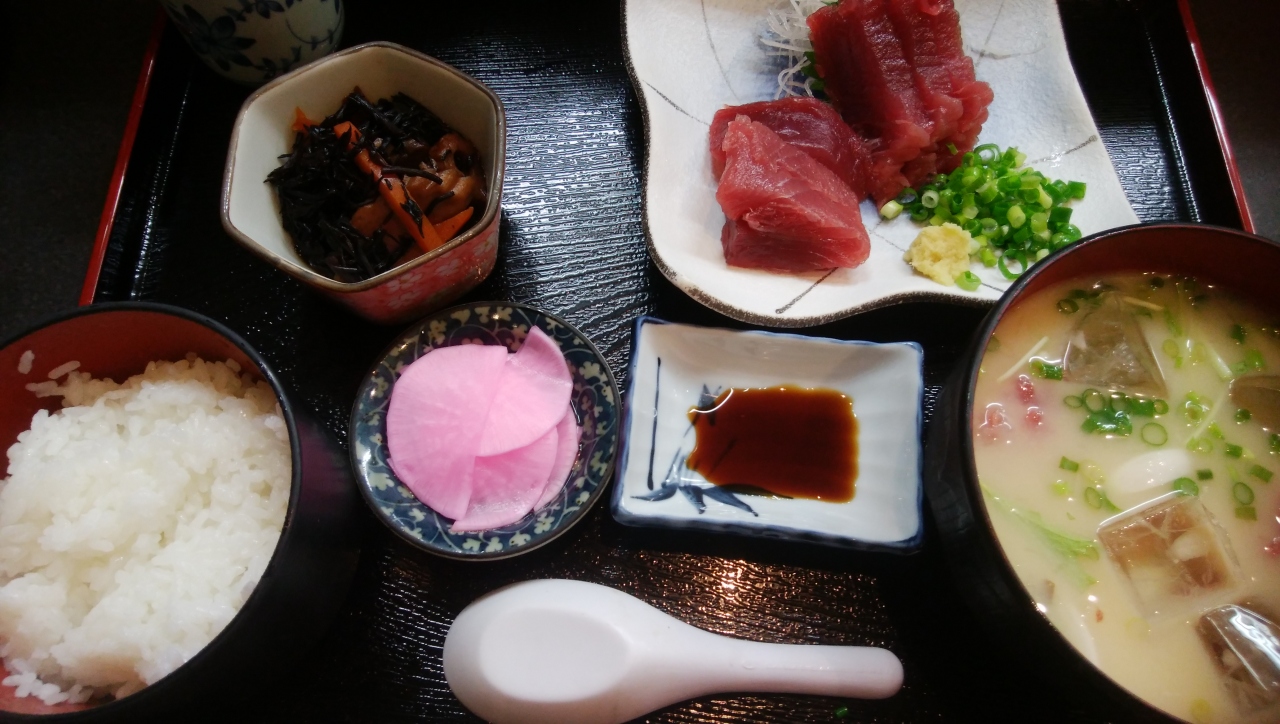 おすすめとあるカツオの刺身定食がわ付きを注文。