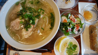 フォー、サラダ、揚げ春巻き、チェー(デザート)が付いていました。