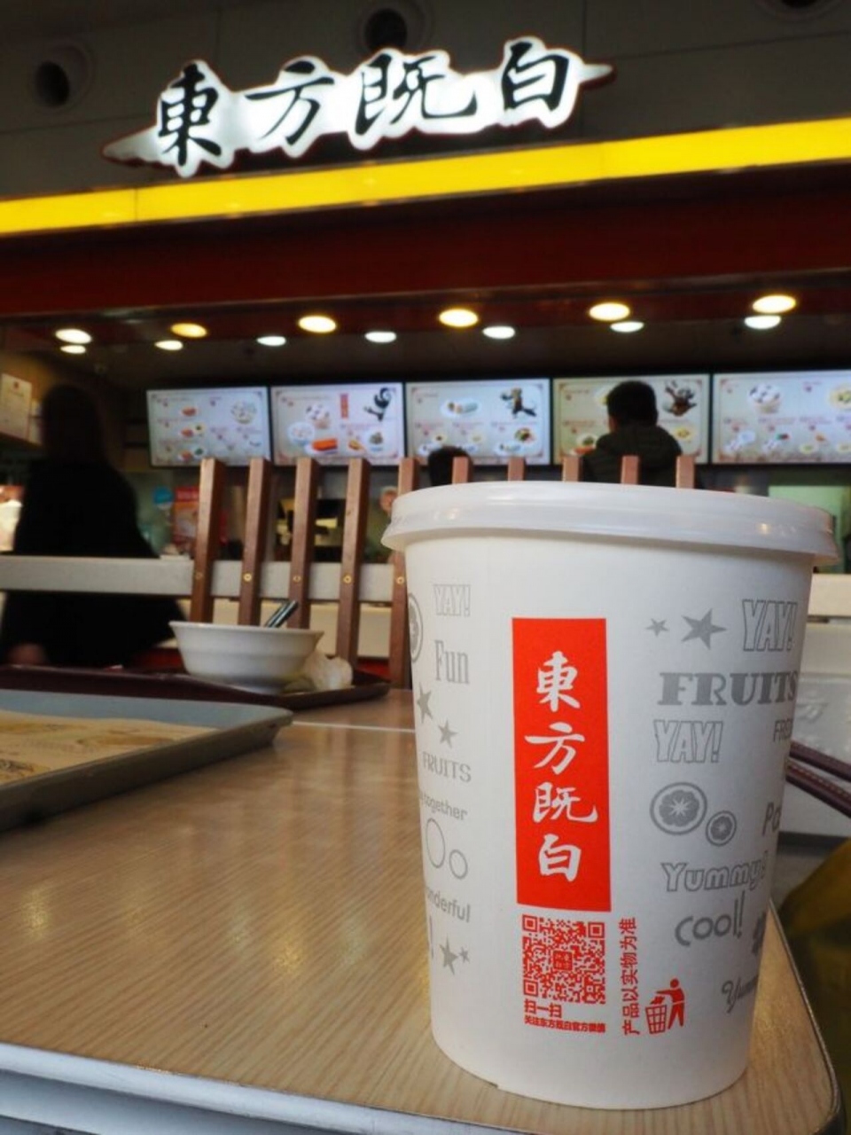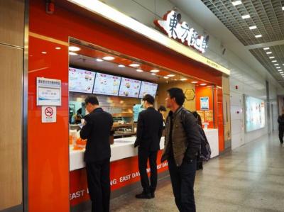 市内にも何店舗かある「東方既白」。じつは肯得基(ケンタッキー)のグループ会社なのです。ターミナル1と2の間、リニア駅付近のフードコートにあります。早朝は温かい豆乳がおすすめ。ランチの時間帯にはセットメニューも。個人的に、ファストフード店ながらもサンラータンはここのが一番好きです。市内より空港店の方が少し高め。