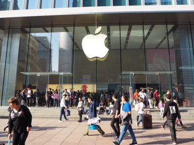 上海の中でもギラッギラに輝く南京東路にあるApple store。リンゴのマークを掲げたお店はあちこちで見かけますが、こちらはモノホン店舗のひとつ。休日ともなるとかなりの人でごった返しているのが遠くからでも分かります。一面ガラス張りの店舗、ごちゃごちゃな通りのなかで、シンプルさが際立っています。