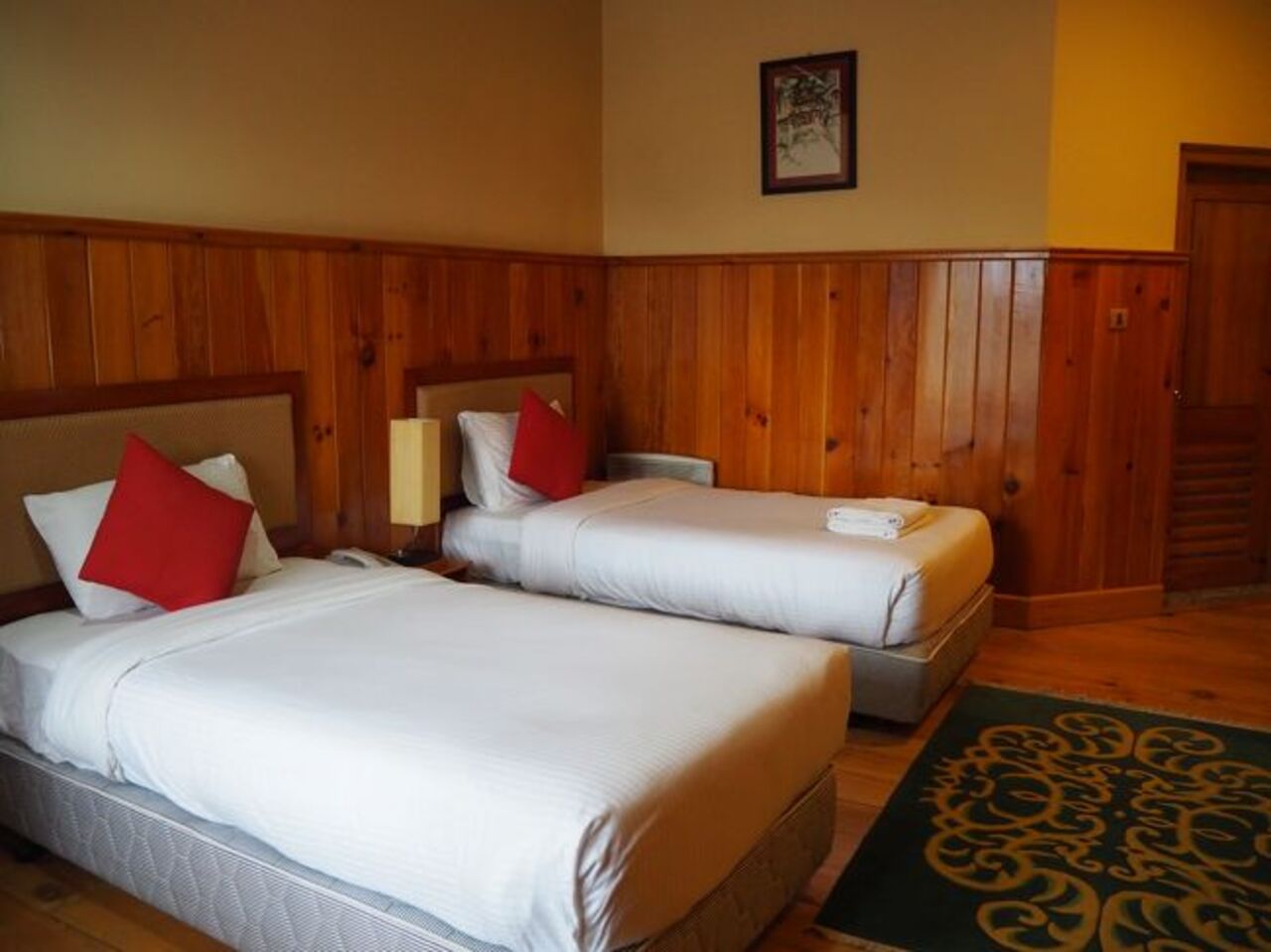 パロ市街からはやや遠い、農道にちょっと入って行った場所にあります。そのため、とっても静か!そして真っ暗!お部屋はコテージタイプで木目調で落ち着いた内装でした。紅茶やポットはありますが、コンセントの接続がよくなく、テレビの線を抜いて利用。でも個人的には人工的な音を鳴らしたくなかったので、テレビは見られなくてもOK。