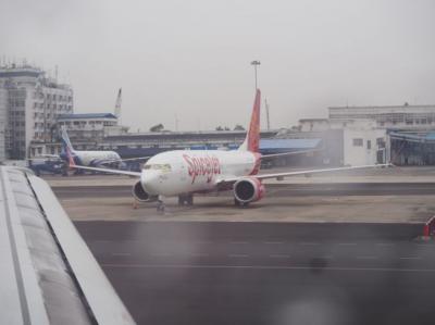 バンコク~ブータン・パロの途中で一旦ランディング。滞在時間は約40分。コルカタで降りる人・乗る人のみの入れ替えと、セキュリティチェックがあります。結構大きな空港で、滑走路も数本あったよう。日本ではなかなか見られない飛行機もたくさん駐機しており、窓の外に釘付けになりました。