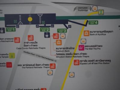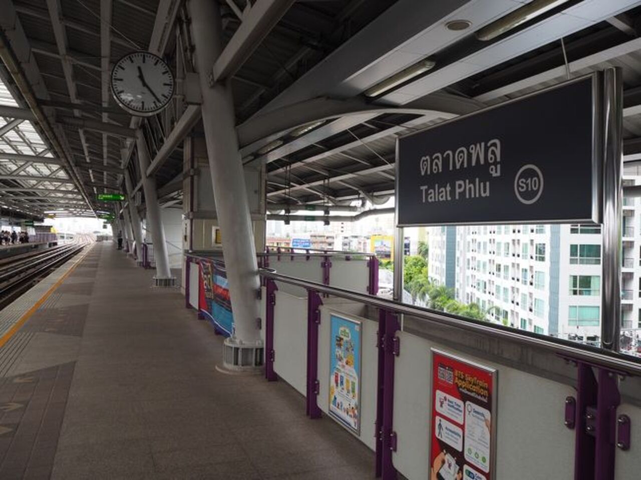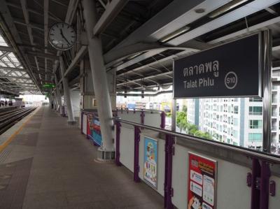 インスタ映えの聖地、ワットパクナムへはまずこのBTSタラートプル駅へ。中心部の駅とは対照的にほとんど混雑はありません。地元民すらチラホラ数える程…ここの3番階段を下り、右手へ真っ直ぐすすむとバスやテンソウ乗り場があります。