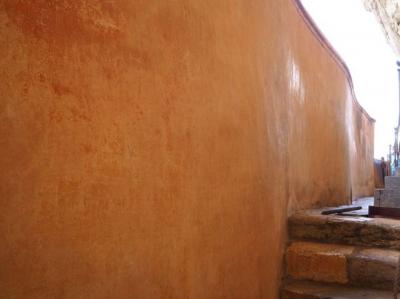 シギリヤロックの一部にミラーウォールと呼ばれる回廊があります。角度をかえてよーくみてみると、光の加減で確かに壁の一部がテカテカしているかも。ここは触れないようにスタンションと監視員がおり、大切に保護されています。