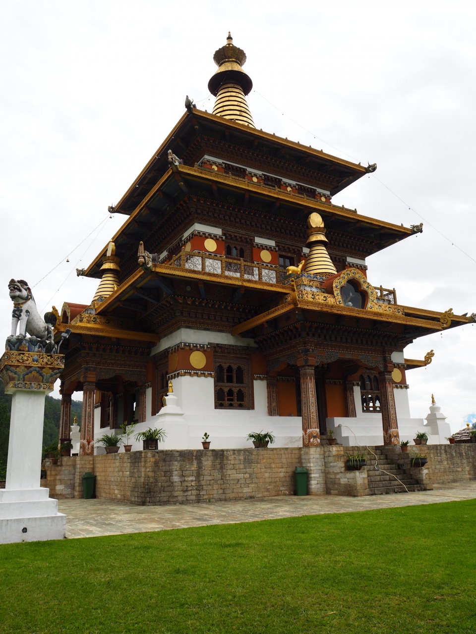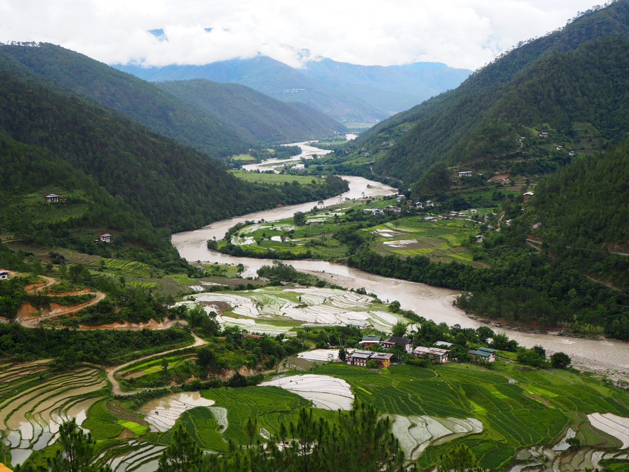 モチュ(母川)の吊り橋からスタートし、美しい田んぼのあぜ道を抜け、坂を上った丘の上にある「Khamsum Yulley Namgyal Chorten」。お寺は3階建てで、中央には仏像が安置されています。階段をのぼり、ルーフトップに出ると、インスタでよく見たとても美しい景色が広がっていました。プナカで行くべきスポットの一つとしてお勧めします。
