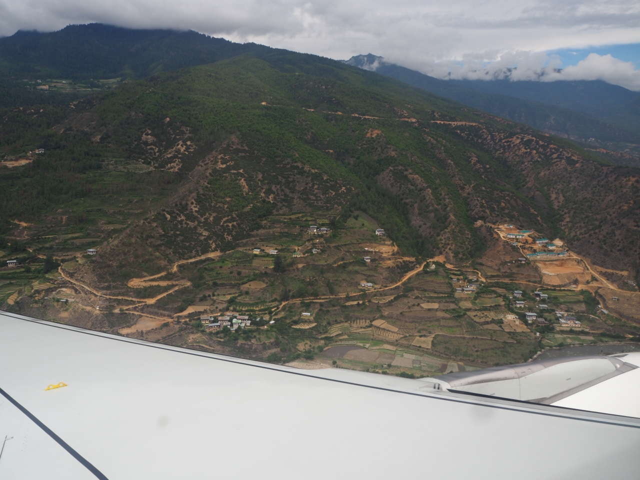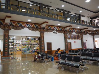 ブータンの空の玄関口、パロ国際空港。2018年に行なわれていた工事も終了したようで、売店やカフェも前回より充実していました。ここの特筆すべきは「建築」。窓枠など細部にまで伝統が取り入れられています。また、着陸態勢に入ると山肌スレスレを飛行、外を見るとたなびく旗やお寺が見え、ブータンに来たことを実感します。