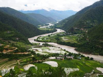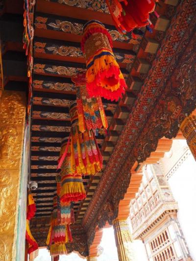 ポチュ(父川)とモチュ(母川)の合流点にある「プナカゾン」。度重なる火災や地震、水害に見舞われ再建が繰り返され今の姿があるそう。ブータンの伝統建築が忠実に取り入れられており、窓枠や欄干の美しさには目を奪われます。また内部の壁にはブッダの一生が描かれており、ストーリーのみならず独特の仏教画も興味深かったです。ゾンの中には一箇所、ブータン人しか入れないお堂があり、即身仏が保存されい