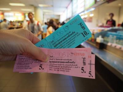 何かと高い空港内でも安くローカルフードをいただけるお店を発見!一階の奥にありました。入ってすぐ左側にあるカウンターで食券を購入し、好きなお店で注文するスタイル。お値段も50バーツ程度から。レストランというより「従業員食堂」的な雰囲気ですが、一般のお客さんも利用しています。