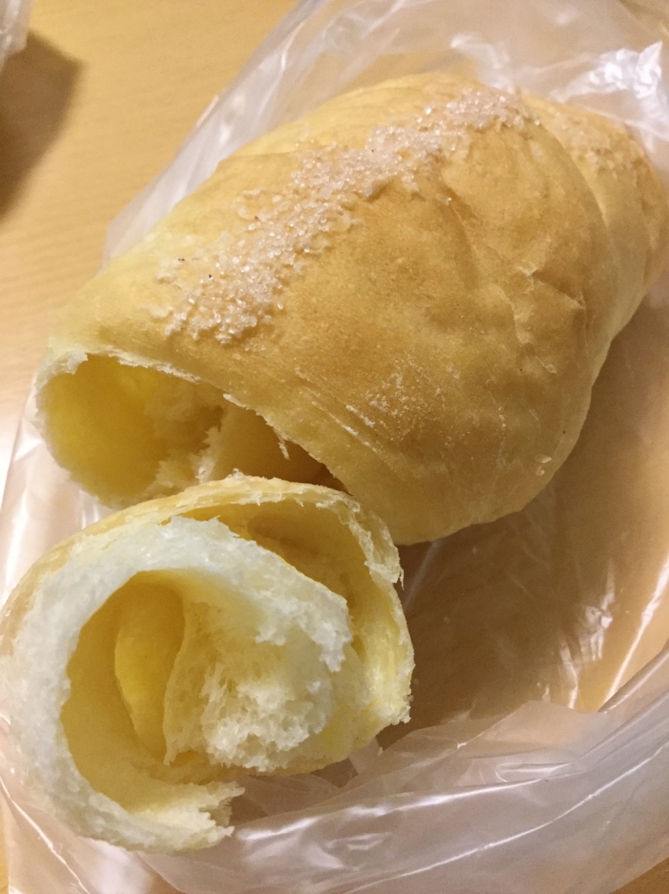 お店の前に広告塔であるかのように売り出されていた塩パン。バター感がほぼなく、塩がのっかているロールパンといった感じ。個人的に染み出るほどのバターのリッチ感が好きなので、リピートはなし。ヴィドフランスと対極的。