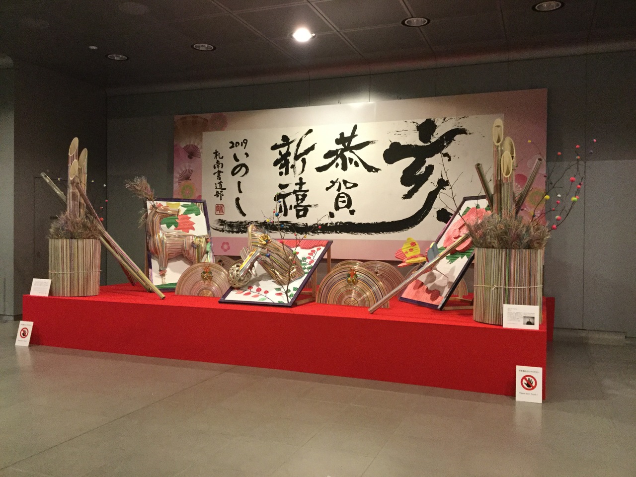ところどころにあるフリースペースでは頻繁にうまいもの市や古本市などが出店。お正月近くなので、年始の飾り付けがされていました。- 旅行時期