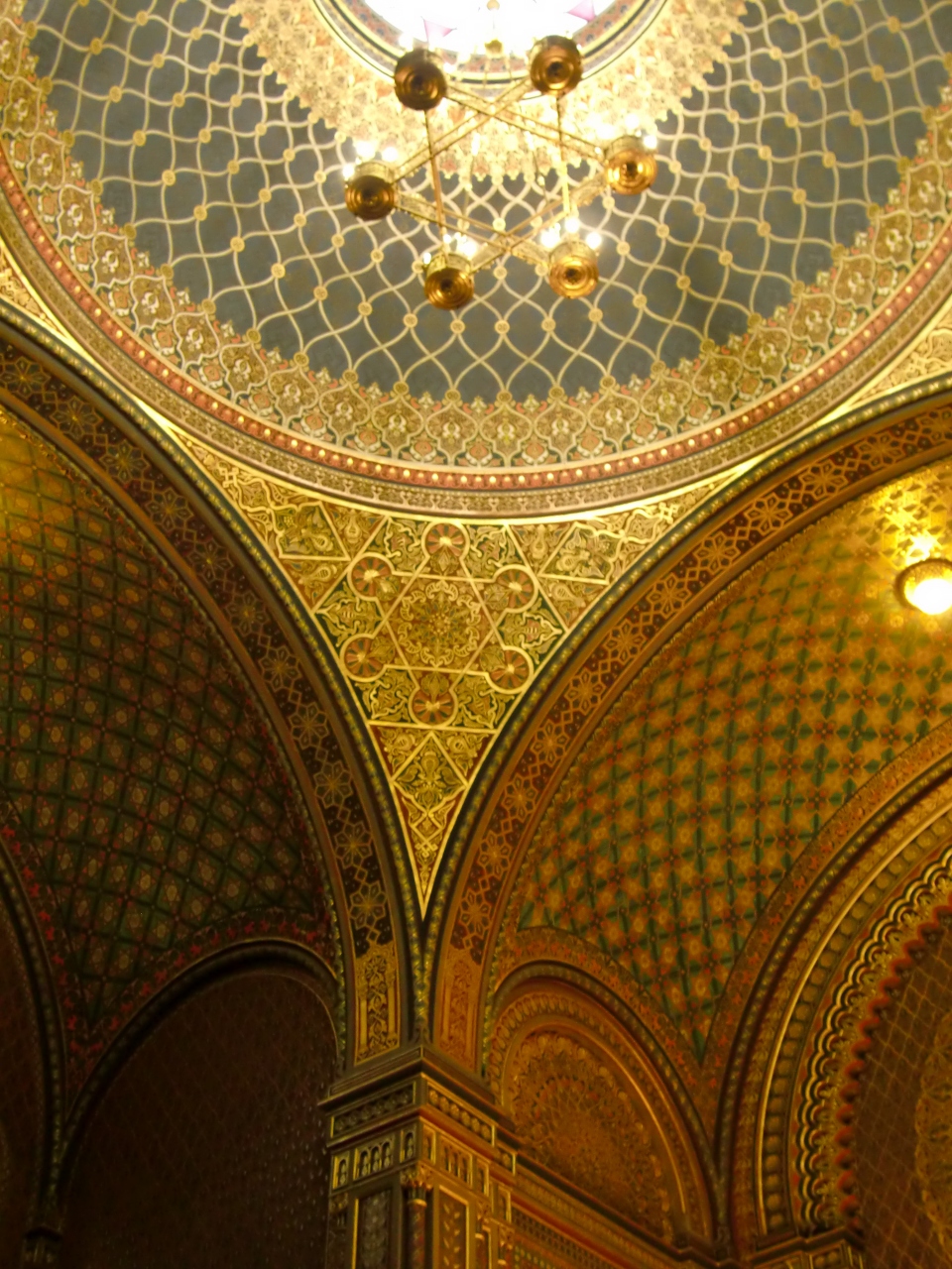 スペインのアルハンブラ宮殿を模した「スペインシナゴーグ」。内部は薄暗いのですが、とにかく金、金、金!そして完全に対称なデザインが目を引きます。現在は音楽会なども開催され、宗教施設のみならずコンサートホールとしても利用されているようです。