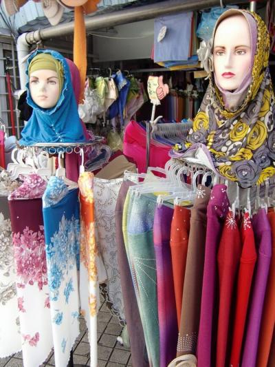 観光スポットのひとつとしてガイドブックに紹介されていますが、正直な印象としては、一般的なおばちゃん服の個人商店といった感じ。特筆すべきはイスラム教国のためヒジャブが多数あったこと。色や柄も様々、それなりにおしゃれを楽しむことが許されているのかと思いました。