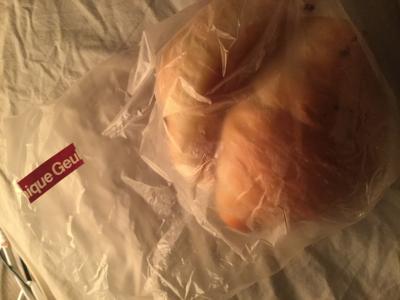 ラス2のうちの1つをget。だからかやや崩れ気味の不細工。表面はサクサクというよりはしっとりめ。個人的にはもっとカリカリしたのが好みかな。中はわりとしっとりめ、そこは◯。- 旅行時期