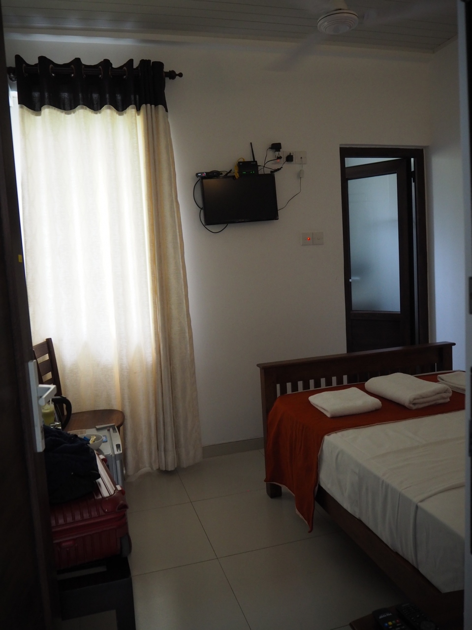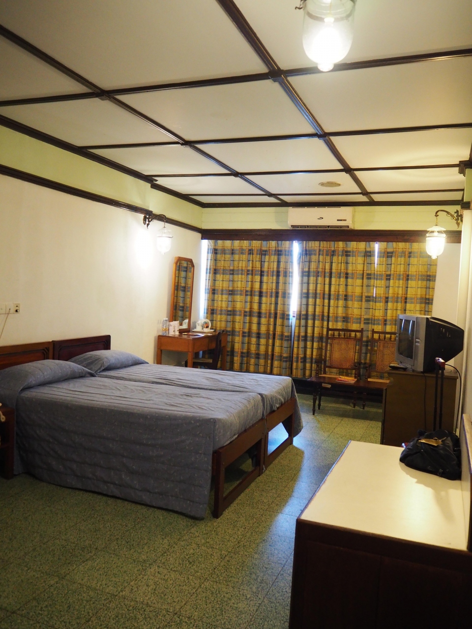宿代の安いスリランカにしてはちょっと高めの¥4,841円。アゴダで予約しました。コロンボフォート駅からは約10分ほど。大きな荷物があるならトゥクトゥクに乗ったほうが良いかもしれません。ツインルームのシングルユース。お部屋は一人には無駄と思えるほど広かったのですが、エアコンは十分効いており快適でした。多少古さが目に付くものの、清掃等はしっかり行き届いていたように思います。