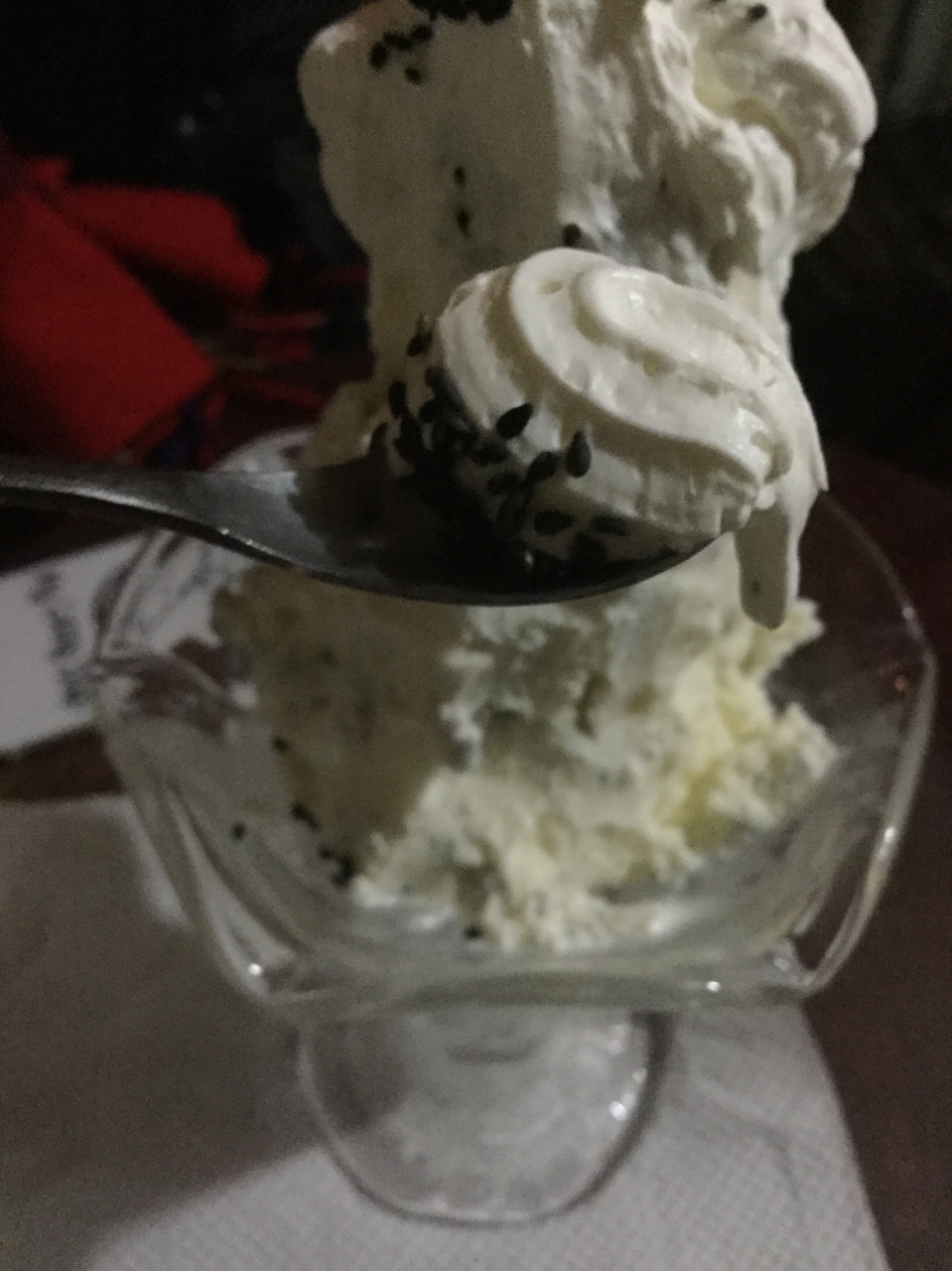 二つ目の「胡麻」がテーブルに。すりゴマが混ぜられたアイスではなく、トップにふりかけのようにかかっています。