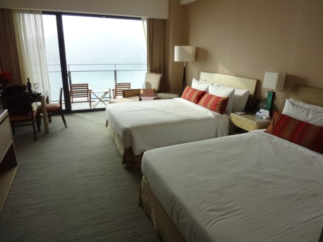 泊まった部屋はレイクビューのお部屋で大きなベッドが2個ありました。本物の大理石か大理石風なのか分かりませんが、ゴージャスなお風呂もお部屋にあります。