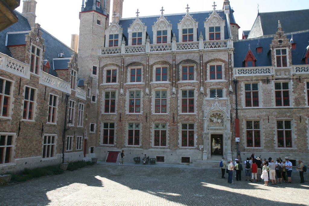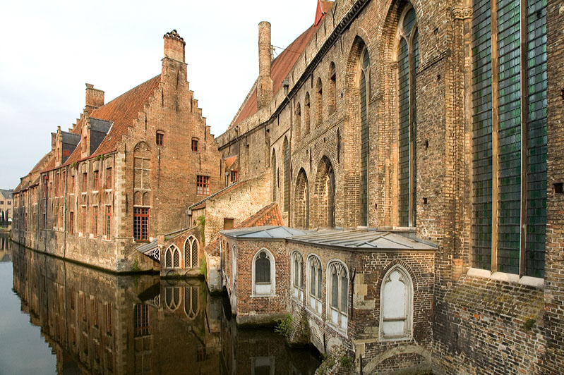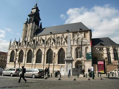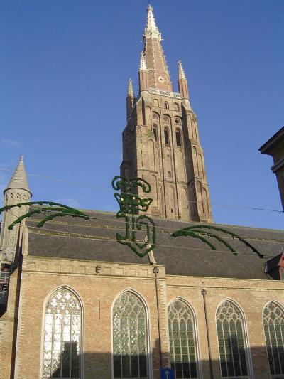 堂々とそびえる塔が印象的でした。13~15世紀にかけて造られ、その後改修を重ねたため、さまざまな建築様式が交じっているそうです。内部には、ブルゴーニュ公国のマリー・ド・ブルゴーニュの墓や、「十字架上のキリスト」を描いたファン・アイクの絵、ミケランジェロ作の「聖母子像」など、の作品が展示されていました。特にミケランジェロ作の「聖母子像」は、彼が唯一国外に残した作品として有名です。また、見事な祭壇やパルプオルガンもありました。