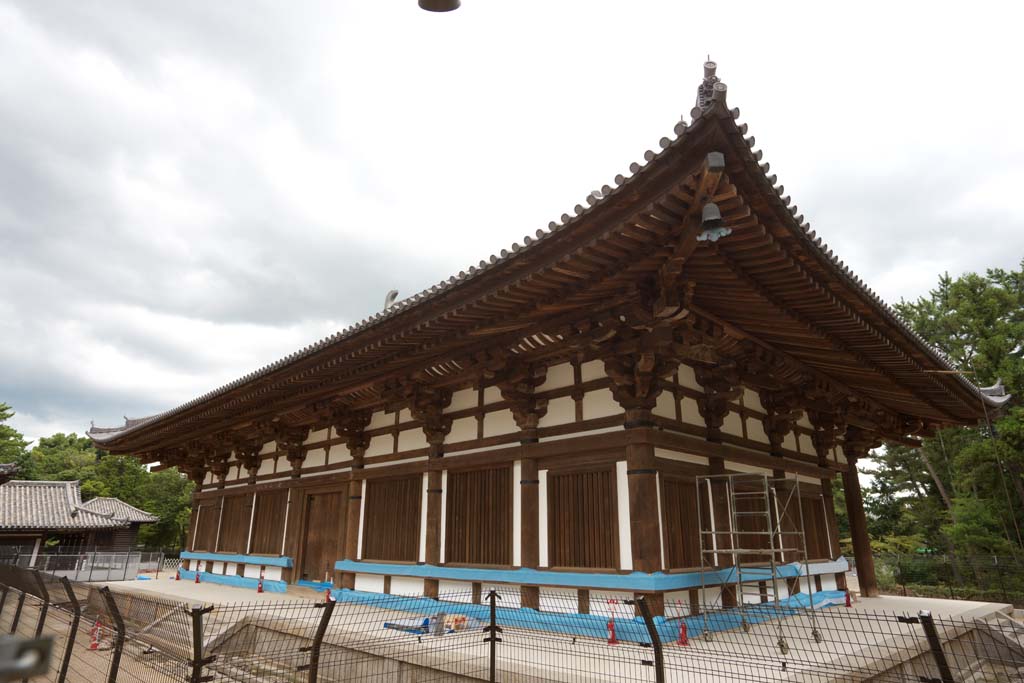 ”天平の甍”の名で親しまれる金堂は平成の大修理を経て奈良時代の姿を今に伝えていました。のびやかな大屋根、ギリシャ建築を思わせるエンタシスの柱の列。ここに来て三尊の仏様を拝すると、静謐という言葉を思い浮かびます。