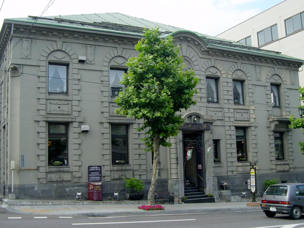 旧北海道銀行が1944年(昭和19年)に北海道拓殖銀行へ吸収合併され、その後1965年(昭和40年)北海道中央バス(中央バス)が取得し本社ビルとしたビルです。1996年(平成8年)に一部を飲食店に改装し、「ワインカフェ & ショップ 小樽バイン」として営業を開始しました。バインとは、お店を経営している北海道中央バスの「バ」と、ワインの「ワ」をもじって、「バイン」としたそうです。建物の中は重厚な落ちついた空間が広がっています。地下には元金庫室を利用してワインセラーもあるそうです。