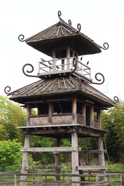 面積は約30万平方メートルにおよぶ広大な遺跡です。この遺跡からは約90点の絵画土器を出土しており、全国の絵画土器出土総数の約3分の1を占めているそうです。また北へ600m程の清水風遺跡からの30点の絵画土器をあわせると、全国の約半分の絵画土器がここに集中していることになります。そのため、この辺りが大和朝廷の中心地ではないかと考えられているそうです。それにしても、渦巻き状の飾りの楼閣は、何かユーモラスでいいですね。