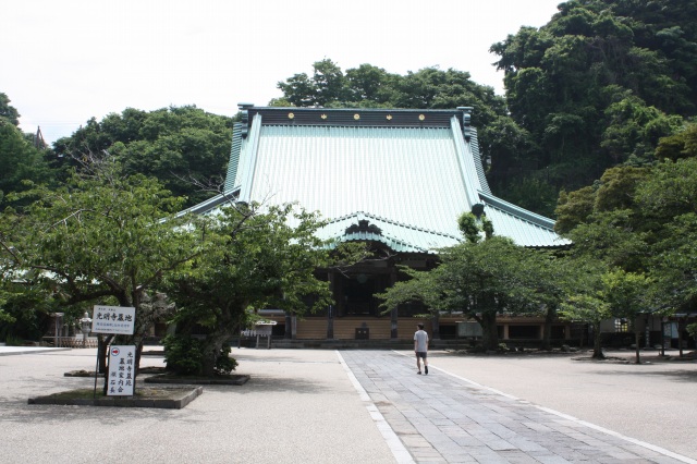 北条時宗の三男、宗政を弔う為に建てられました。山門は、上部に鐘を吊った珍しい様式をしています。仏殿に安置されている阿弥陀如来、釈迦如来、弥勒菩薩は神奈川県の重要文化財に指定されており、それぞれ過去・現在・未来を表しているのだそうです。七福神の一柱として信仰されている布袋様の像が、境内に祀られていました。お腹をなでると元気を分けてもらえるのだとか。その他にも境内には茅葺屋根の造りをした書院なども見る事が出来ました。
