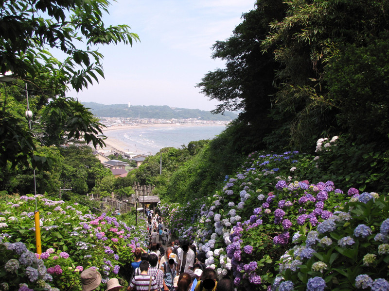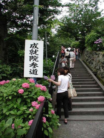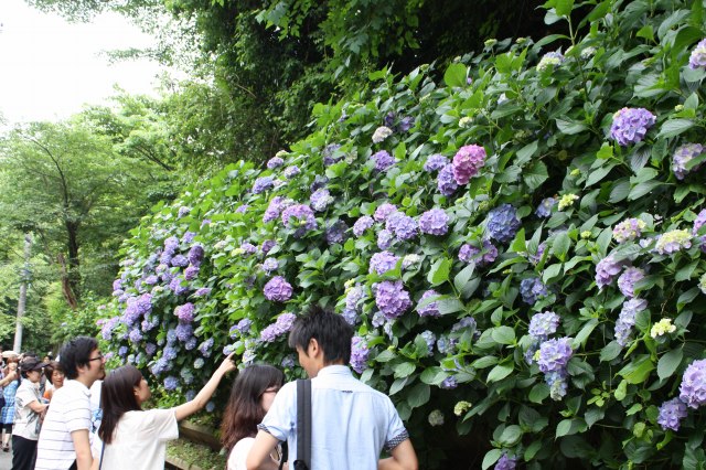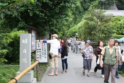 「明月院」は別名「アジサイ寺」とも呼ばれています。紫陽花は日本が原産地なんですが、昔はあまり人気がありませんでした。青い花色のせいでしょうか、江戸時代には「ユウレイバナ」と呼ばれてまったく見向きもされませんでした。日本であじさいの人気がでてきたのは、戦後に「明月院」の庭に植えられたのが始まりだそうです。そのごろからようやく人々があじさいの魅力に気がつき、それ以来全国の名所旧跡などでは初夏の風物として人気を集めています。