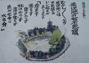 太鼓橋の両脇に大きな池があります。左を平家池、右側を源氏池と言います。平家池には四つ島があって「四」と「死」をかけたのだそうです。また源氏池には三つ島があって「三」と「産」をかけて、源氏の子孫繁栄を願ったのだそうです。