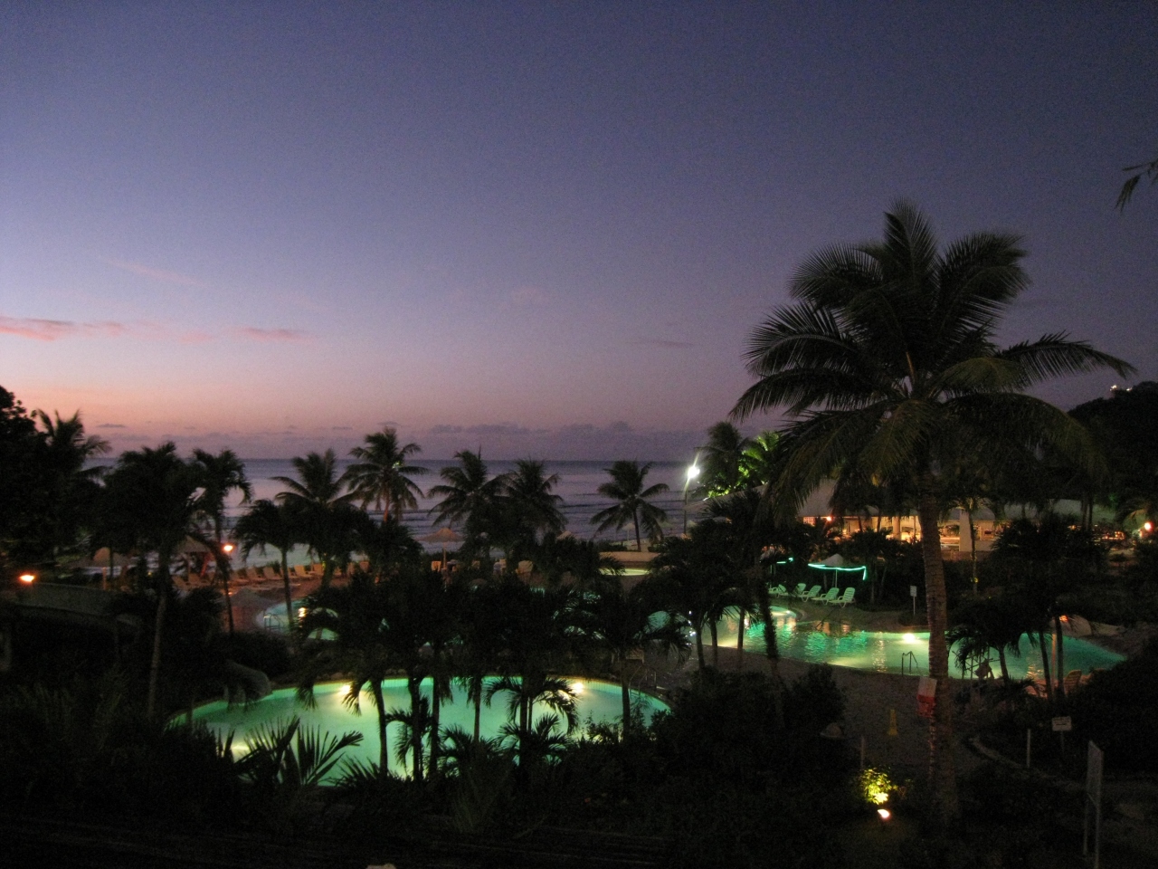 6月・7月位にホテルニッコーグアムに宿泊すると、プール方向に沈む夕日を見られます。