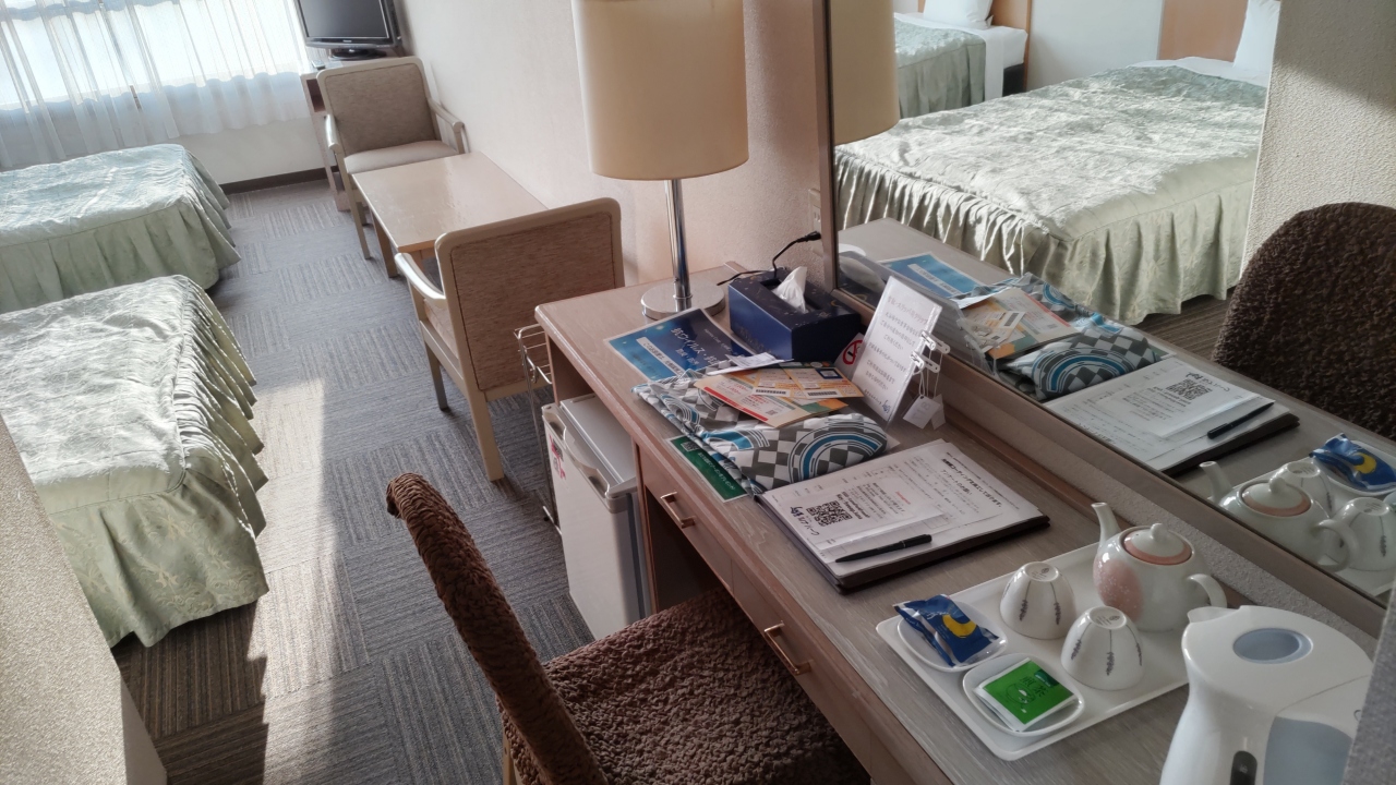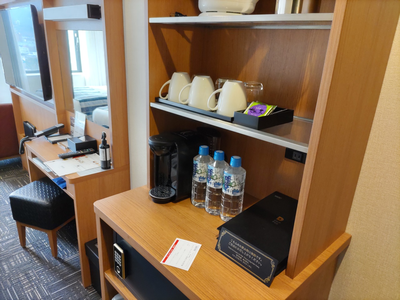 変わった点で室内にはミネラルウォーターのペットボトル類がないのですが、コーヒーメーカーのような浄水器が設置されており、そちらで浄化したお水やお湯が飲めます!- 旅行時期