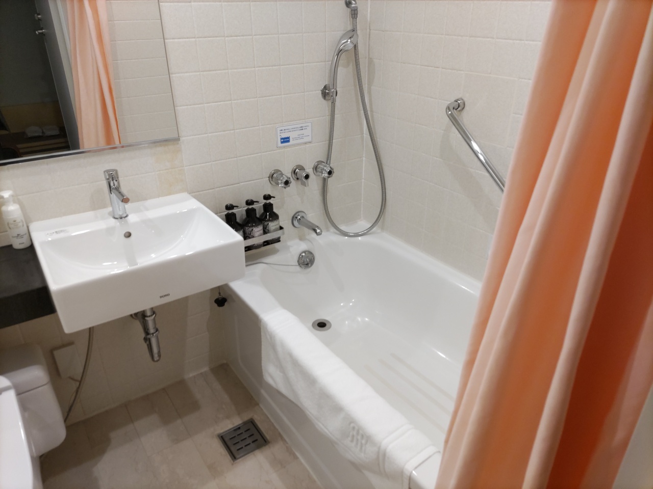 建物は元ラディソンホテルで、昨今のビジネスホテルより広めですが、コンセントやバスタブなどは少し古め。そこをカバーすのが無料で利用できる湯楽城です!お風呂も広く、岩盤浴もあり、楽しめます。ジムや小規模セブンイレブンもあり、施設内だけでも時間はつぶせます。