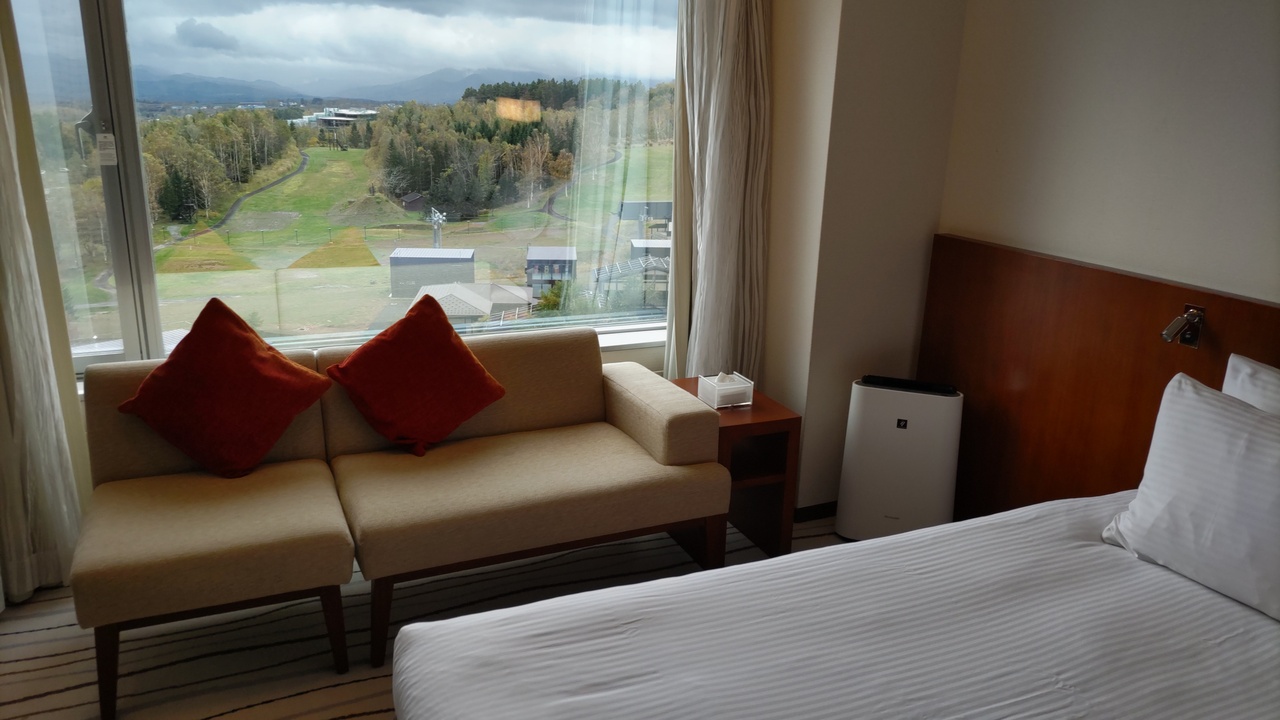 室内は広くて景色も素敵ですが浴室周りはイマイチ。ただ、温泉完備なので何も問題ありません。ゴルフ場が併設のためチェックアウト後も入浴できます。