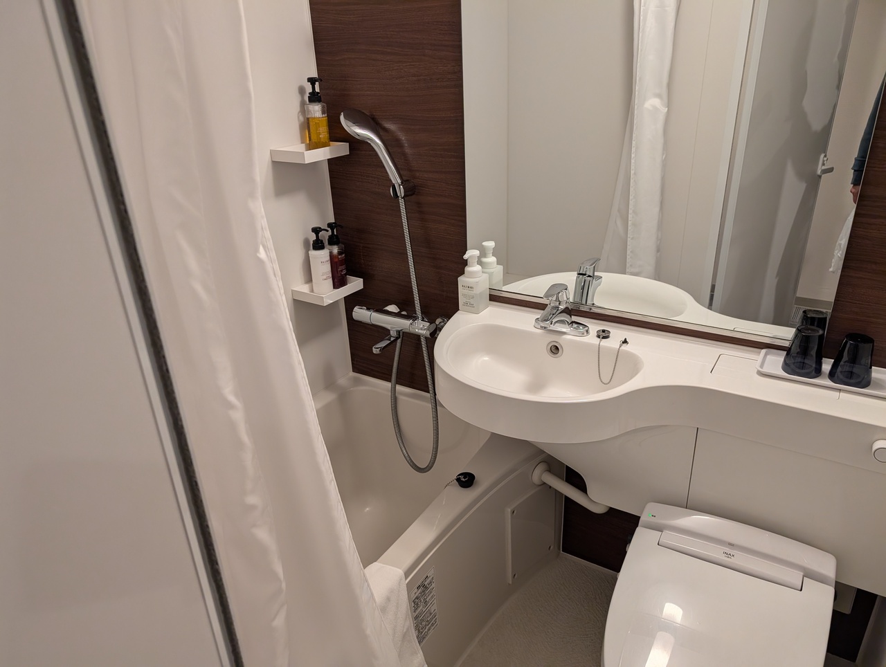 立地は京都駅と四条の中間で、繁華街に比べて落ち着いた場所。新しい施設で清潔快適です。大浴場完備でボディタオルが用意されているのは便利。サウナもあります。朝食も京都おばんざいが充実していて、値段を考えるとコスパよかったです