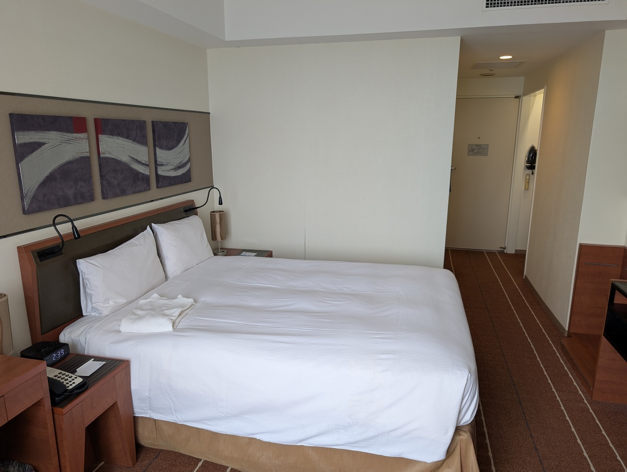 室内は少し良いビジネスホテルという感じですが、きれいで、屋上のフィットネスやプールからは海を眺めながら気持ちよく過ごせます。