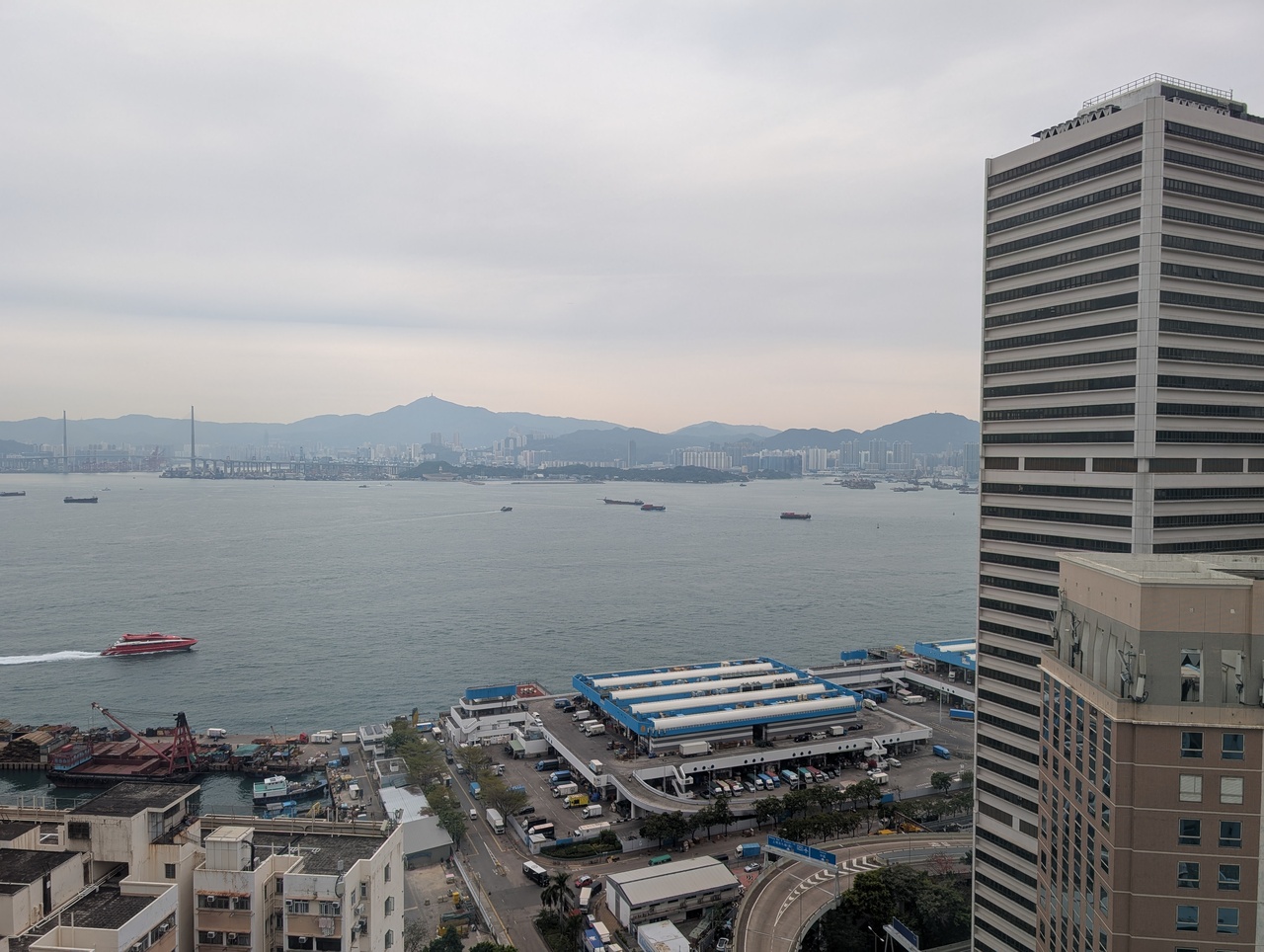 周りは香港島メインのあたりの人がごった返すほどでもなく、お店やスーパーがあり、空港バス、地下鉄、トラム、マカオイキフェリーの乗り場がいずれもすぐそばか近い。