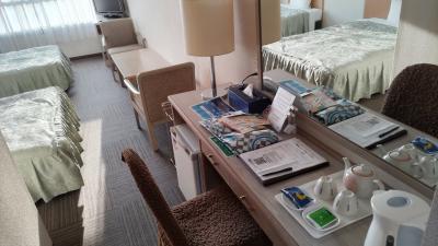今回は本館のトリプルルーム。リノベーシュンされてキレイ。また本館なら屋上が温泉なのでエレベーターの乗り換えがなくスムーズ。温泉は塩分が強いお湯。露天風呂もあり海を観ながらの入浴は気分が良いです。