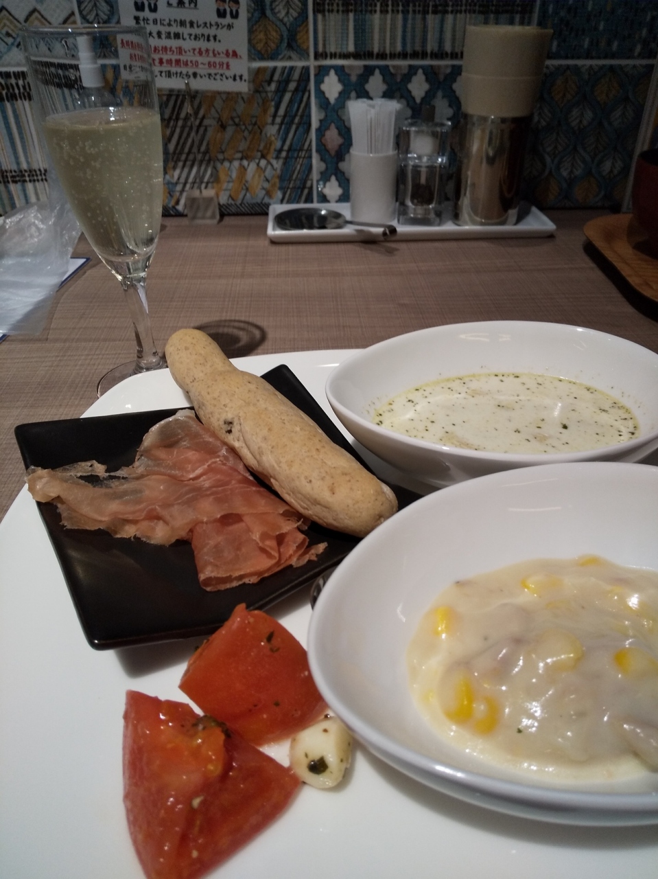 何より2階にある朝食会場スペースでは常時ラウンジサービスが実施されており、誰でもドリンクサービスが受けられ、時間によってはワインといったアルコールや、お茶漬けのお夜食サービスがあり、大満足!朝食は日にち限定ですが、朝からスパークリングワインも飲めます- 旅行時期