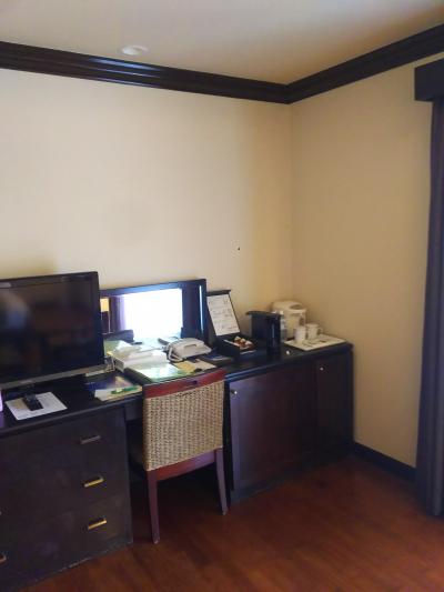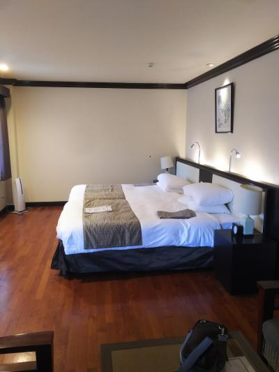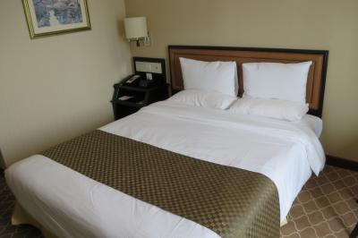 室内は必要なものまとめられており、金庫もあります。ベットはシングル予約でもダブルベットで日本のビジネスホテルより広いです。ただ、浴室はシャワーのみで狭いですが、不便はありません。