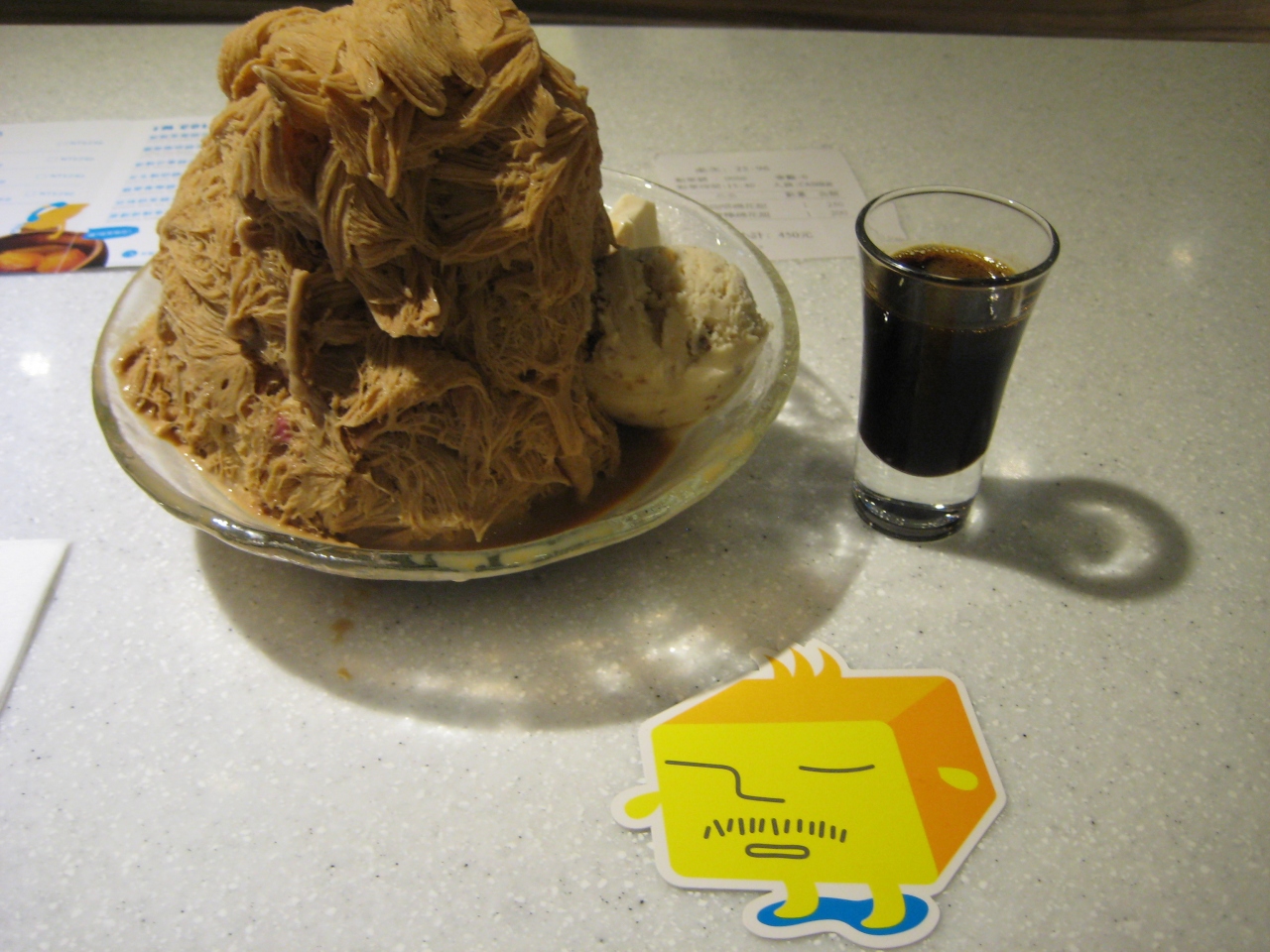 注文したのは同じく数量限定となっていた、コーヒーベースにカルアミルクとベイリーズをかけていただくアルコール入りのカキ氷(250元)です。カクテルのアレキサンダーのような味。アイスクリームや中にコーヒーゼリーも入っており、いろいろな楽しみ方ができました。