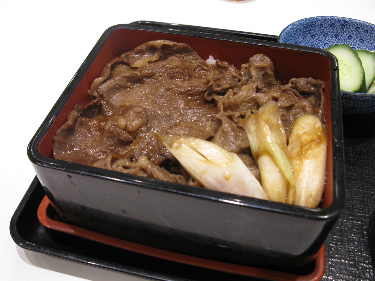 肉は牛丼で使われているアメリカ牛ではなく和牛です。注文してから一枚一枚丁寧に焼いたようです(←客の少ない時間帯だったからかも)。味は甘い目のすき焼き風でした。そこそこ美味しかったけど二回目はないかな。空港にあって手頃で食事ができるのはありがたいです。牛丼の値段は空港価格でした。この「牛重は」1,240円也。- 旅行時期