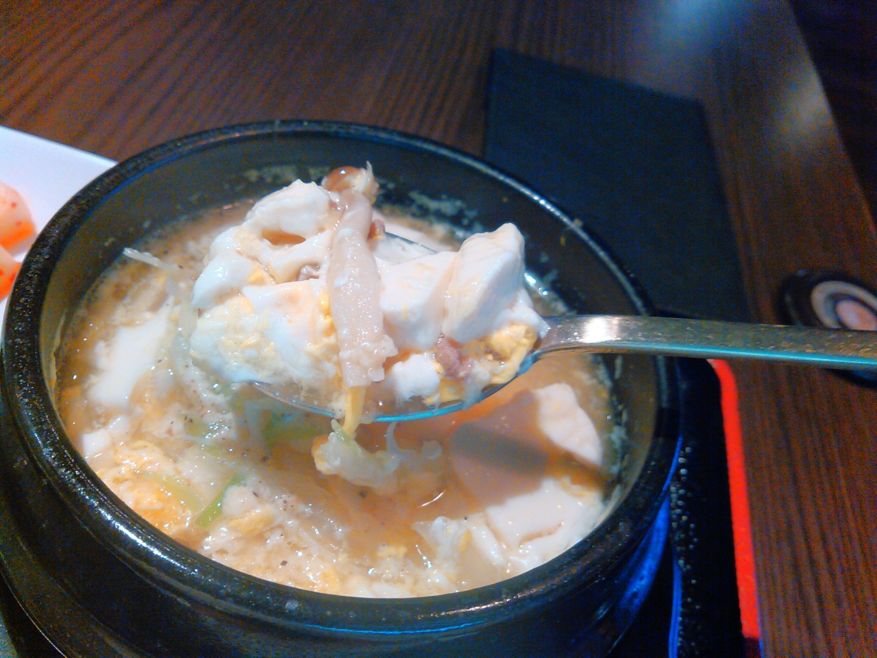 お店によってキムチの漬かり具合いは違いますが、こちらのお店のキムチは酸味がきいていてとても美味しかったです。豚肉もやわらかく煮込まれていてほろほろでした。