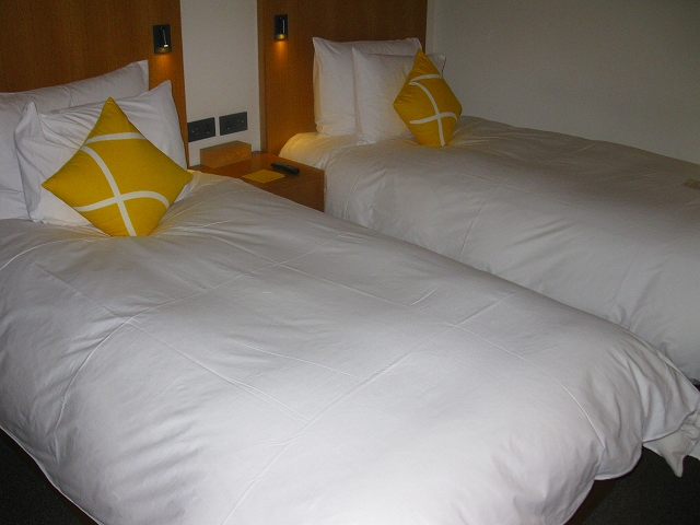 狭い部屋を選んでいて自業自得ですがベットも小さく欧米人なら足がはみ出るでしょう。スーツケースはベットの上でないとひろげられないと思います。