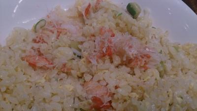 チャーハンの中にごろっとかにの身が入っていて、パラパラした食べやすいチャーハンでした。