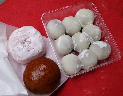 人気の豆大福は売り切れでしたが、他にもいろいろ大福や饅頭が店頭に並んでいて、どれもおいしそうなので迷ってしまいました。