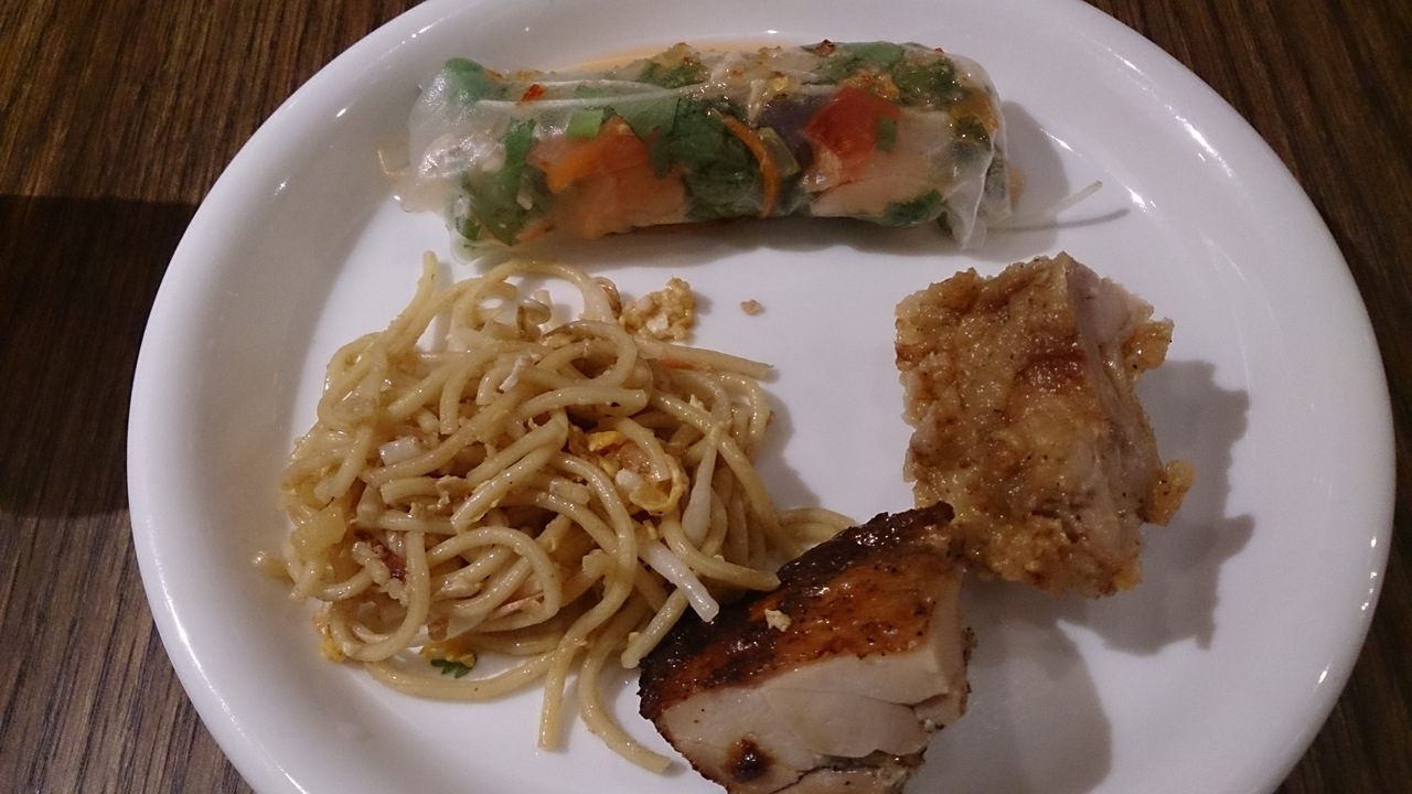 鶏肉料理や、サラダ、チャーハン、パッタイ、グリーンカレー、デザート各種などいろいろありましたが、特においしいと思ったのはシーフードサラダとグリーンカレーです。