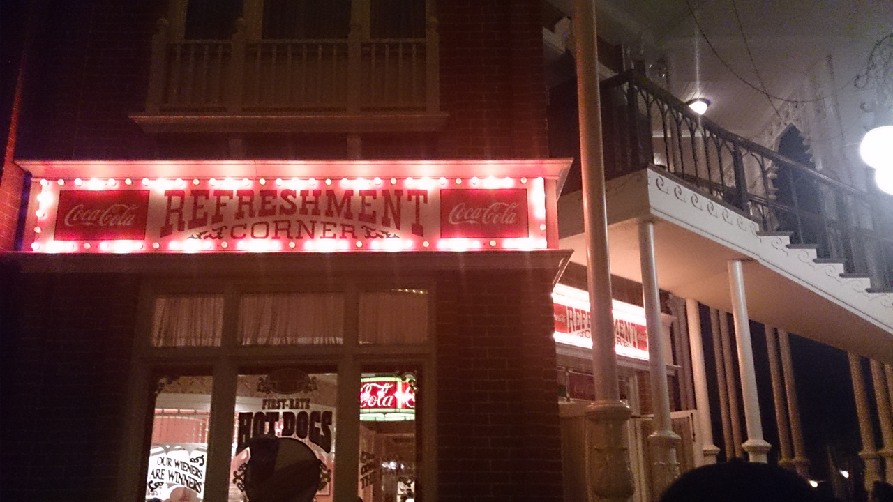 ディズニーランドの外、駐車場へ行く途中に軽食が売っている店があります。