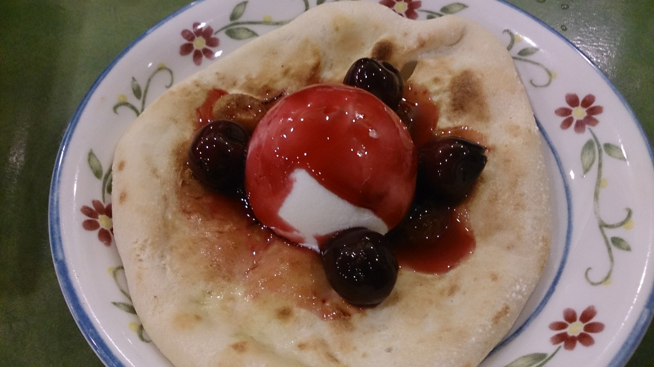 新発売のデザートを食べましたが、チェリーソースとアイスが合わさっておいしかったです。- 旅行時期