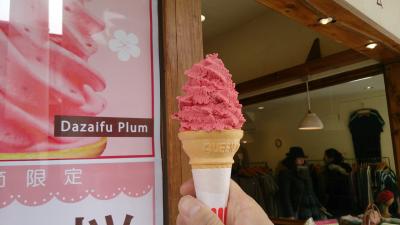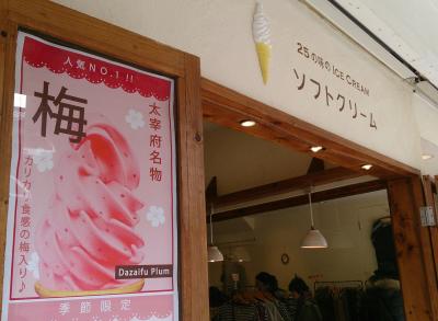 ソフトクリームを食べたくなって、どれにしようか迷った中から大宰府名物人気No.1の梅味のソフトクリームをオーダー。