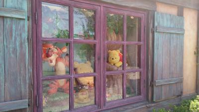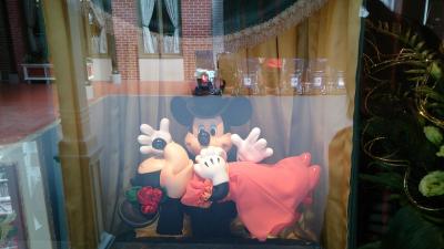 通りに面したウインドウディスプレイが、ミッキーのマジックで宙を浮くミニーになりました。