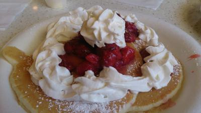 エッグベネディクトとストロベリーホイップパンケーキを食べました。