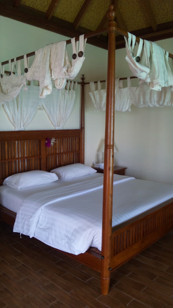 憧れの水上コテージ!寝室には天蓋付きベッドも!